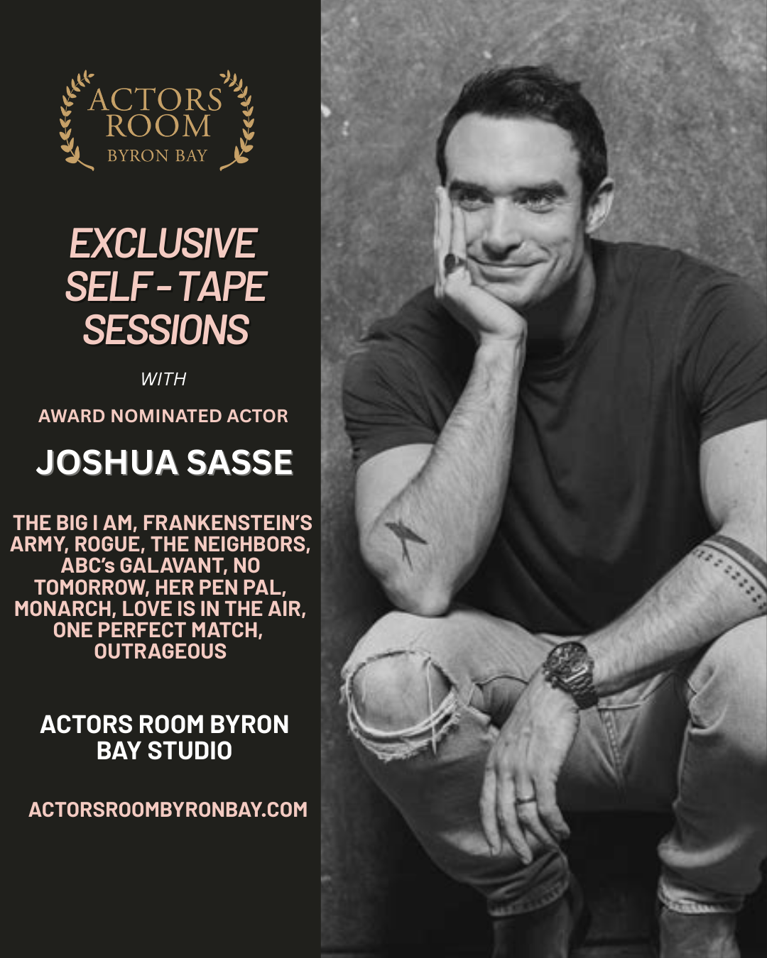 Award Nominated Actor Joshua Sasse coaching actors for self tape auditions and self tape reels for an exclusive limited time at Actors Room Byron Bay studio for an hour and half.